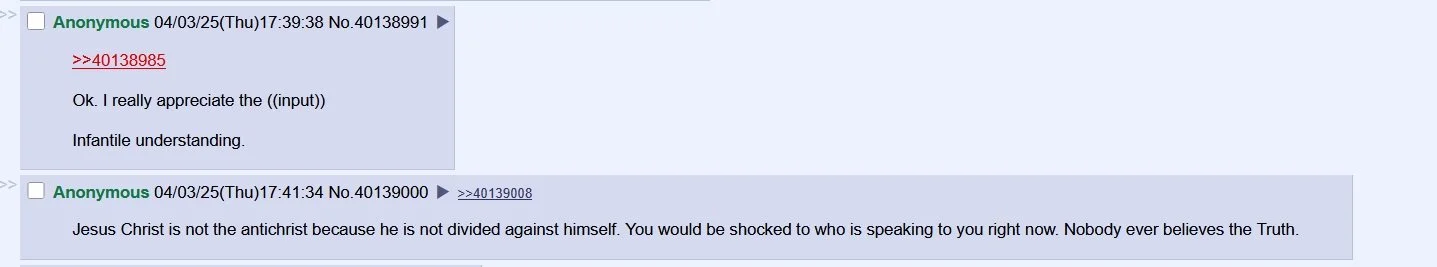Callerrrrrssssss. hiiiiiiiiiii :3 good morning. I was talking to religious people this morning. I was saying how important it is to remember that i don’t know people. The various religious and political leaders know their people way better than i ever intend to. That’s my problem with places like mega churches. I like a place where you can shake the shepherd’s hand. Musicians are not the same. Mcchris allows all his fans to say hi but he’s not there every week. People say the only way to god is through Jesus and in a way, that’s absolutely correct but more in what the name conveys than the historical figure. Congregating, communing together, and establishing humble bonds of trust and ritual is about the only way to achieve the state that i have been in for the past 4 days. Our church was the /ng/. We have a lot of traditions for a group that’s only been around since whenever we decided today. We’re still looking for that cat. If you get too close the feds come down on ya. If you say you are, you aren’t as it applies to the nobody. Don’t come after my Holy Ghost cred, that’s different. It would be ridiculous to tell someone your name and have them go “well if you say you are…” We communed by responding to positive posts instead of negative ones as that is important. We still do i guess. I am new to ways and the community. However, the feeling starts almost immediately and grows over time. If you don’t feel it, you’ll probably gravitate elsewhere. The /ng/ isn’t a real place though. I don’t know any of these people. We all use code names or no names at all. Some don’t even post. They just provide spiritual backup. Just because you aren’t in the choir doesn’t mean you aren’t praying for them. Some are in there for no reason. We don’t like them. They just keep coming back. I was once one of them. I got banned so many times for my sick “your mom” jokes. But each time i would tailor my return to suit the new rules. When i got banned for commenting on post numbers i adopted [redacted] like the glowies and conspiracy heads. When i got banned for off topic nonsense on other boards, i started raiding more effectively. You know, respect. Some people in the /ng/ don’t do that but they aren’t technically breaking any rule. They either want everyone to follow them, to understand the suffering that’s about to come their way, or to claim to be the nobody. Again we don’t want them there but it wouldn’t be the same without them and it’s important to remember that. it’s important to have compassion for people who don’t hurt anyone but also don’t impress anyone. They’re best largely ignored and certainly not amassed but eh… heaven ain’t hurtin for having em.